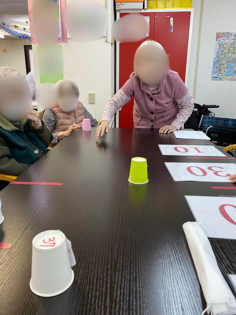 先日、毎月恒例の茶話会を行いました。内容は紙コップカーリングですが、当日は猫の日に因んで紙コップに猫のイラストを貼りつけ、「ねこちゃんカーリング」として実施させていただきました!
